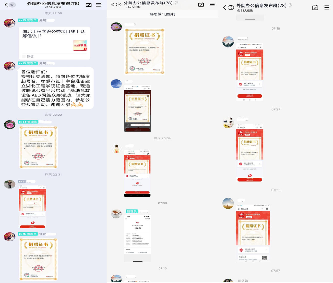 11日晚上10点,当《bevictor1946韦德官网公益项目线上众筹倡议书》的推文转发到外院教师群时,公司教职工热情高涨,积极行动,纷纷为公司红会基地建设慷慨解囊、奉献爱心,网上操作出现困难的老师,更是咨询如何才能顺利捐款。