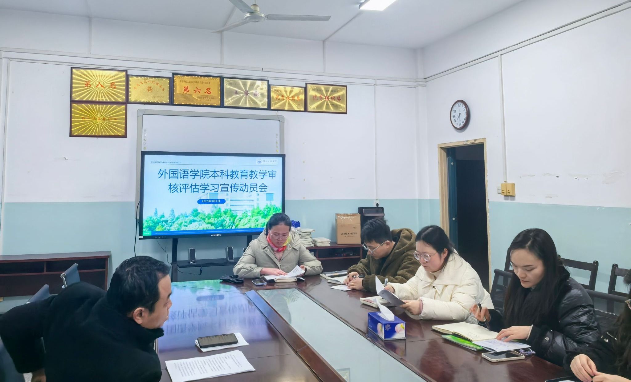 根据公司党委统一部署,3月6日bevictor1946韦德官网召开本科公司产品审核评估班主任学习宣传动员会。公司党委副书记李云山、辅导员白思冉及各班级班主任参加会议。会上,公司党委副书记李云山老师围绕“如何用员工听得懂、愿意听的方式讲好审核评估”展开动员,强调要结合外语学科特色和员工成长需求,将审核评估的核心要义转化为“青言青语”,真正让评估理念入脑入心。