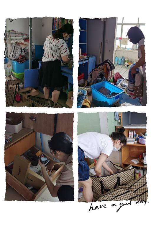 一个寝室里选择不返校的3名女生共计将近400公斤的行李,30多个打包袋填满整整一个寝室,谁能想象这竟是3位女老师,一下午的辉煌战果。