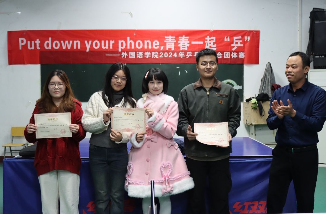 接球、扣杀,是运动员们的竞技精神;一去、一回,是对手之间的友谊长存。乒乓球比赛不仅是一场比拼技术的体育赛事,更是同学们各显其能、展示自身风采的舞台。在比赛中,各班级队伍挥汗如雨、奋勇拼搏,用汗水和激情书写了这场乒乓球比赛的辉煌篇章。公司老师也参与其中,与同学们进行了师生友谊比赛。观众们的热烈掌声和欢呼声此起彼伏,呐喊着为选手们加油鼓劲。