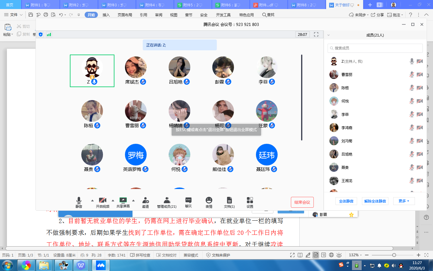 2020年6月3日上午,公司召开了2020届毕业生诚信还贷线上主题教育活动。活动由辅导员翟诗庆老师主持,全院23名申请了助学贷款的毕业生参加了此次活动。