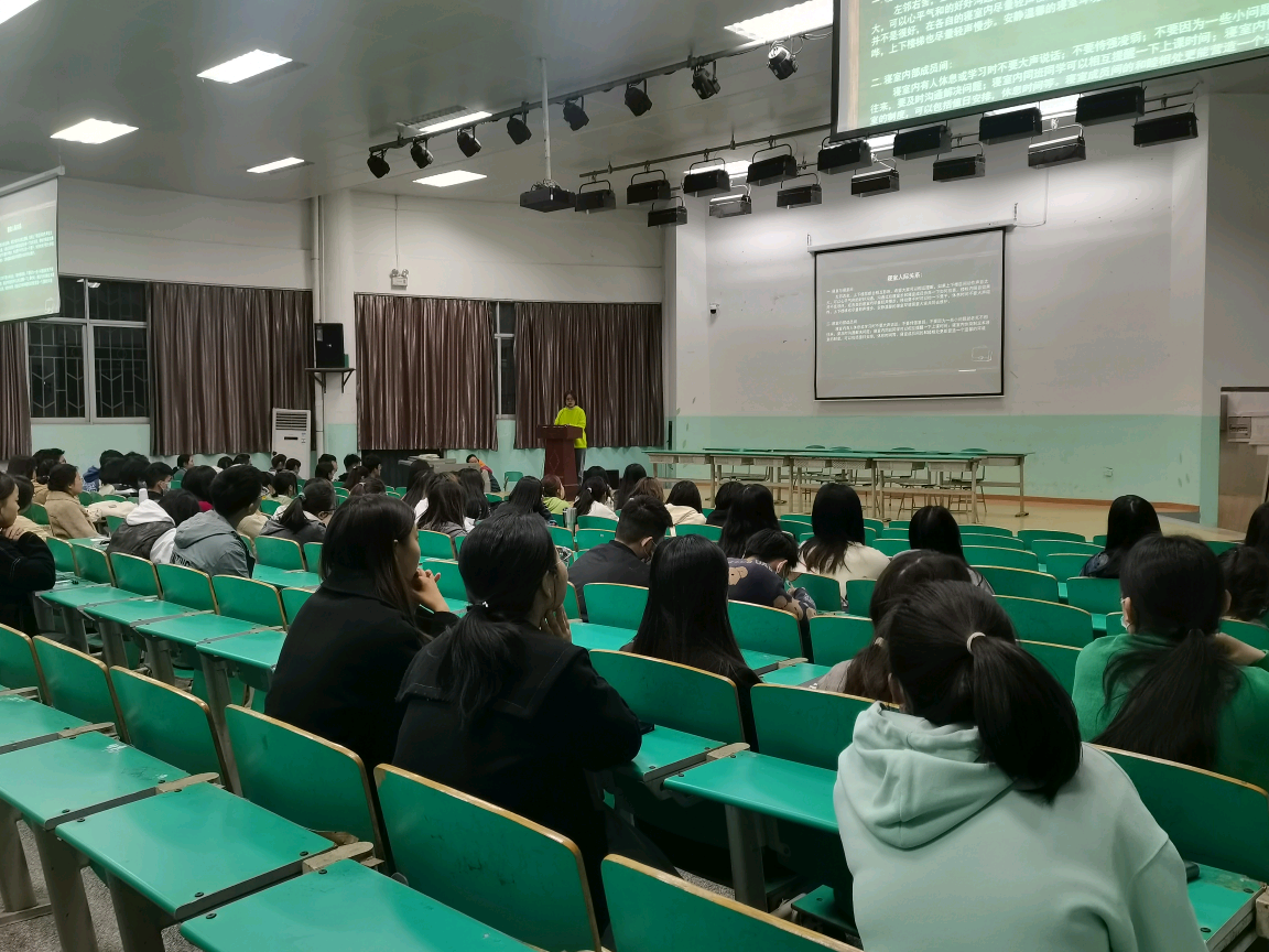 10月17日下午六时,公司于外语楼报告厅开展了寝室长大会活动。出席本次活动的人员有院辅导员杨思敏老师、寝管会干部以及全体寝室长。